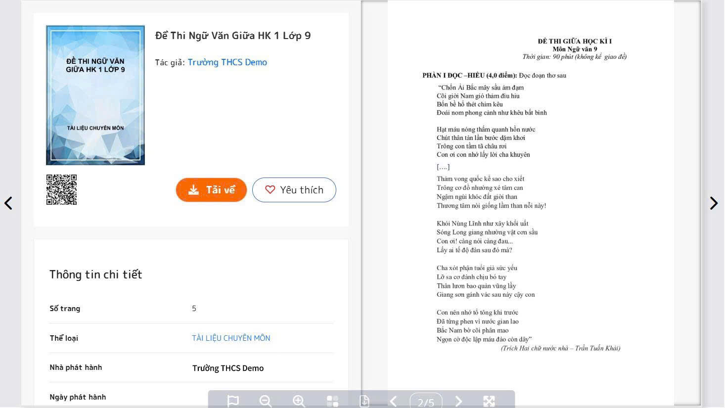 Sau khi duyệt xong, tài liệu sẽ chuyển sang trạng thái "Đã duyệt" và người dùng có thể truy cập tài liệu đó. Tài liệu của nhà trường sẽ được hỗ trợ tất cả các tính năng của danh mục Tài liệu Thư viện số DLib K12 như là: xem trực tuyến, tải file về thiết bị, lưu trữ ở danh sách Yêu thích,...