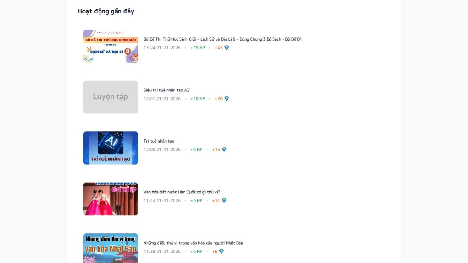 - Đối với tài liệu, hệ thống chỉ tính điểm HP và Diamond khi học sinh tham khảo tài liệu có từ 10 trang trở lên.