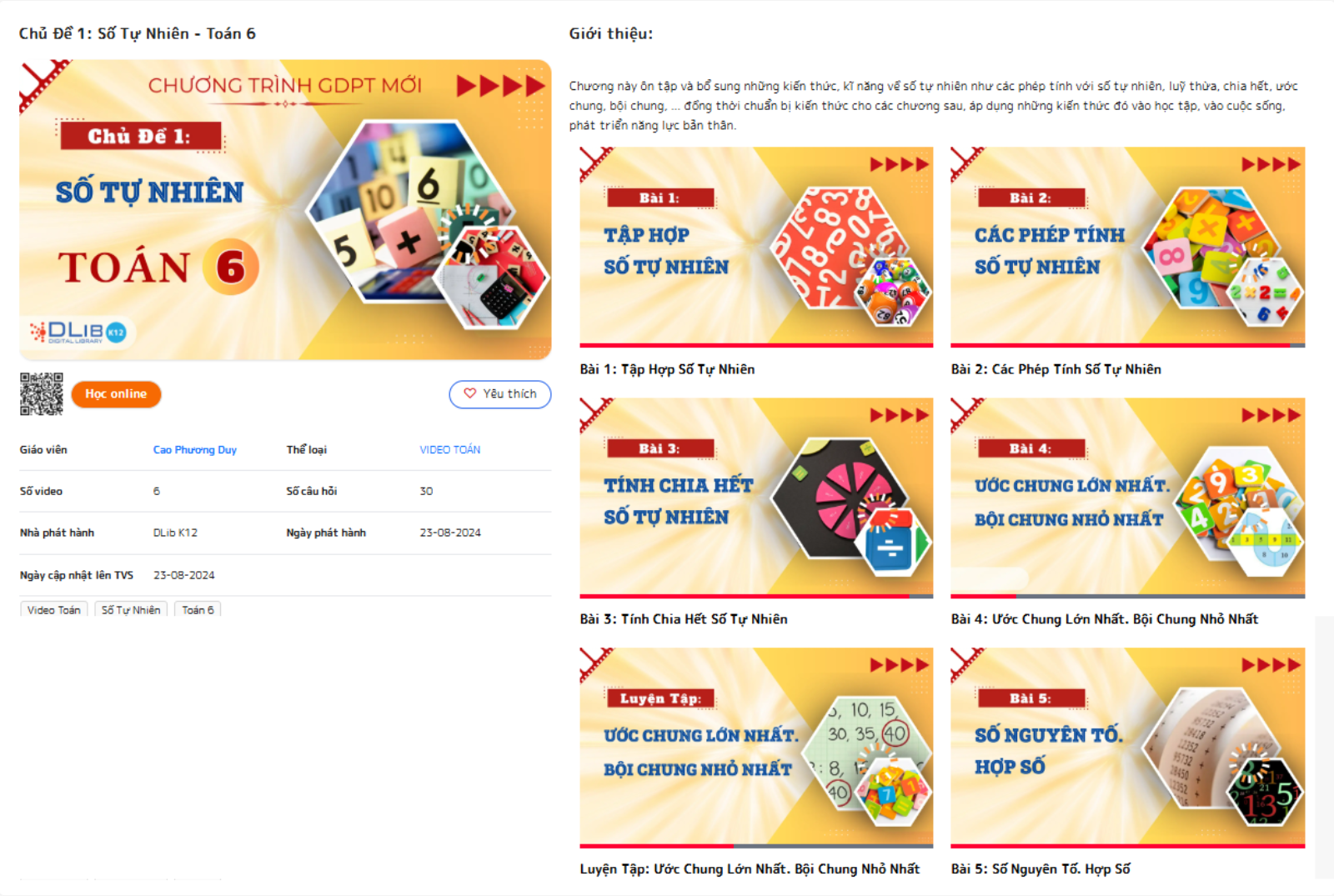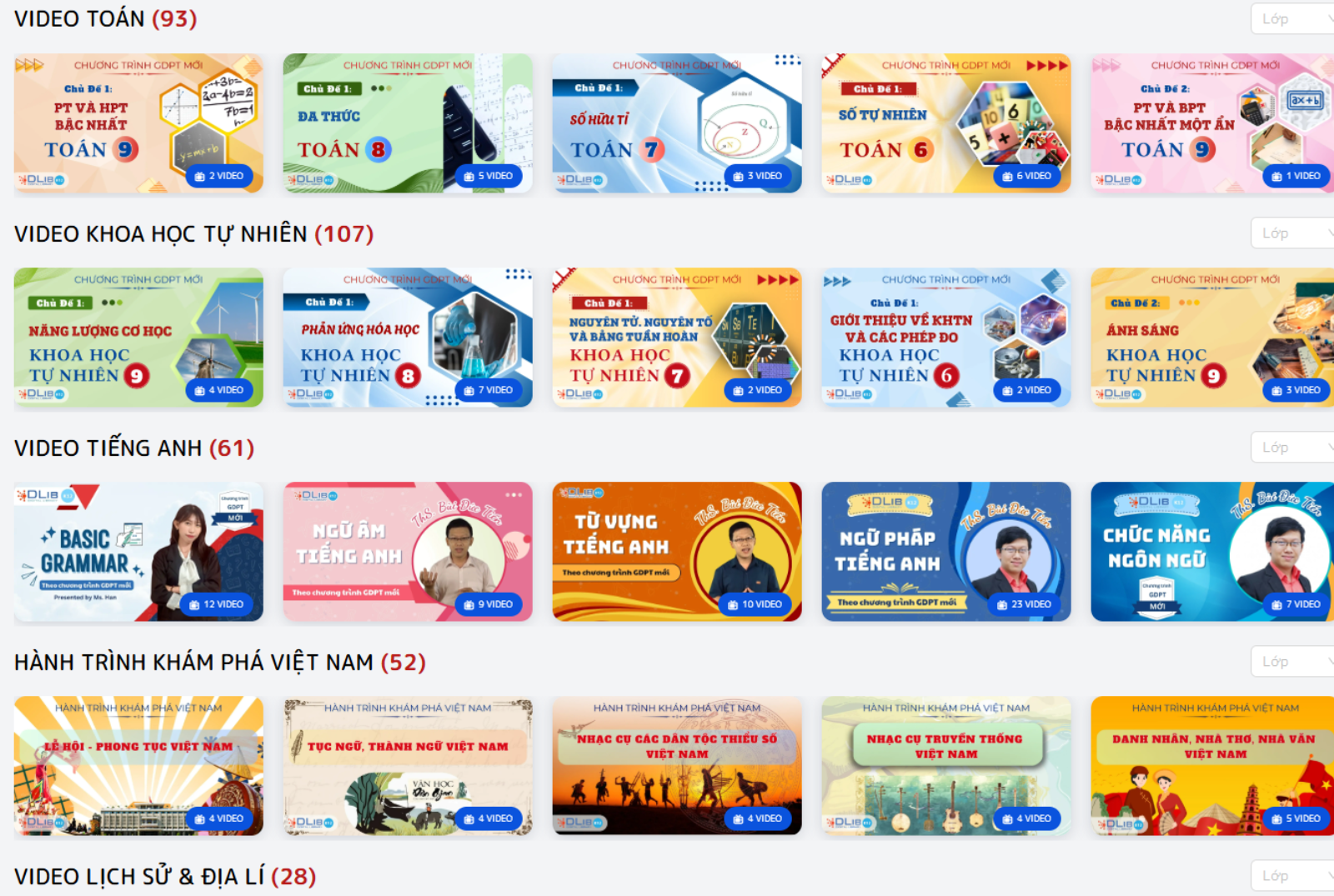 Các video trên hệ thống được sắp xếp theo từng chủ đề cụ thể như: Toán, Tiếng Anh, Khoa học và cả Kỹ năng sống, giúp nội dung trở nên rõ ràng và dễ tiếp cận. Nhờ cách phân loại hợp lý này, học sinh có thể nhanh chóng tìm thấy video phù hợp với nhu cầu học tập của mình, tiết kiệm thời gian và nâng cao hiệu quả tiếp thu.